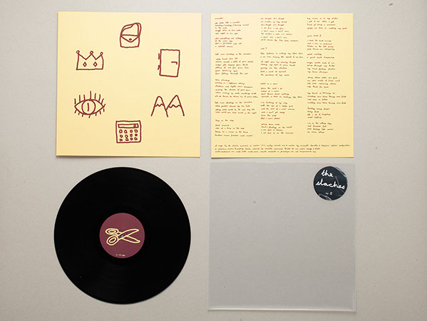 I did the artwork for The Staches' "EP III". The cover and the insert was silk-screen printed by Les Belges. Fun fact : The Staches and I printed the stickers, adding splashes of white ink, so every sticker is different.